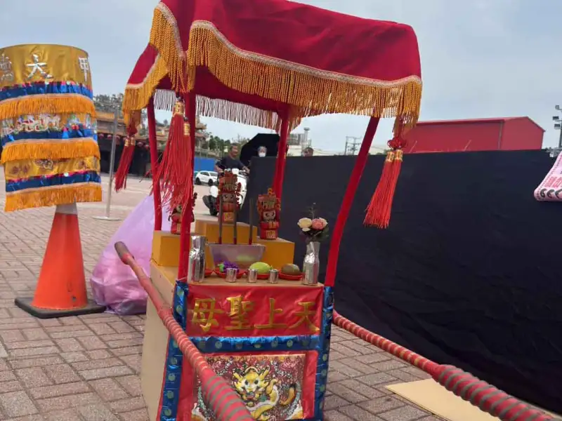 媽祖神轎由幼兒園教師親手製作,細緻還原傳統樣貌,讓孩子在參與中體驗宗教文化與工藝之美。(圖/灣裡萬年殿提供)