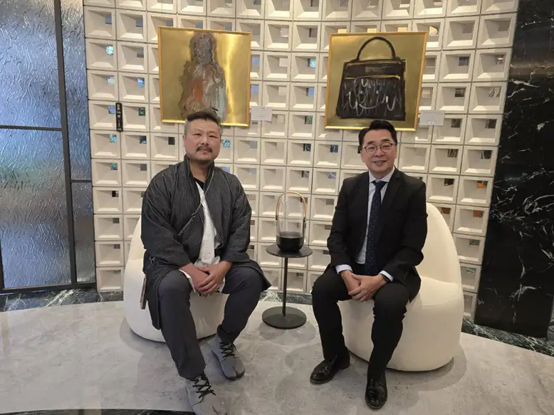 尉寶建設總經理陳英哲(右)邀請民眾親臨體驗藝術家如何把「生活即藝術」融入每個細節。(記者夏鈺晴攝)