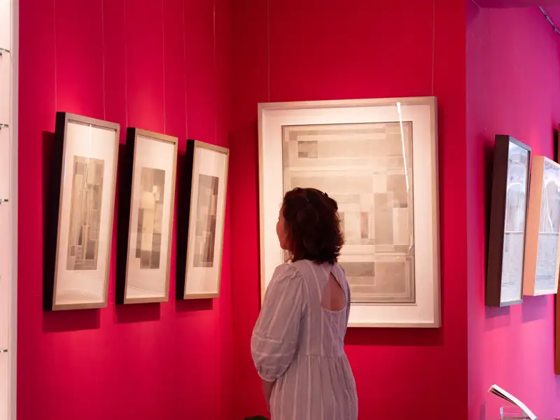 目前伍空間正展出「葉帆-都市山水」特展(2026/01/01~04/15,預約制)。中國當代水墨藝術家葉帆,以極其細膩的墨線層疊與大面積留白,構築出多維度的時間景觀。這些作品宛如都市人內心的「城市山水」:高樓林立的繁忙中,藏著對靜謐的渴望;時間如水般流動,卻又在某個瞬間凝結成永恆。展場的光線隨著時辰緩緩推移,投射在墨跡上,產生微妙的陰影變化;茶香則從旁悄然散開,與畫面融為一體,讓每位觀者自然而然地深呼吸,走進畫中,也走進自己被忽略已久的情感角落。這不只是一場展覽,更像是一場與時間、與自我的對話。