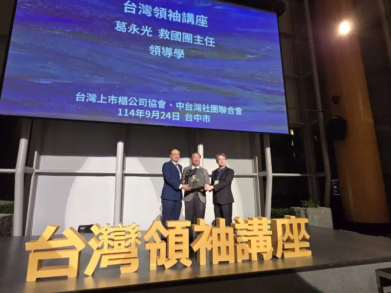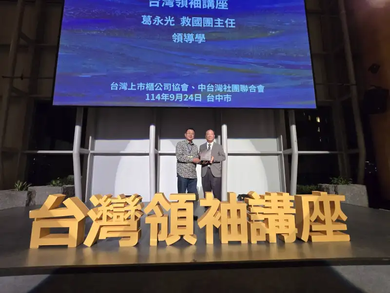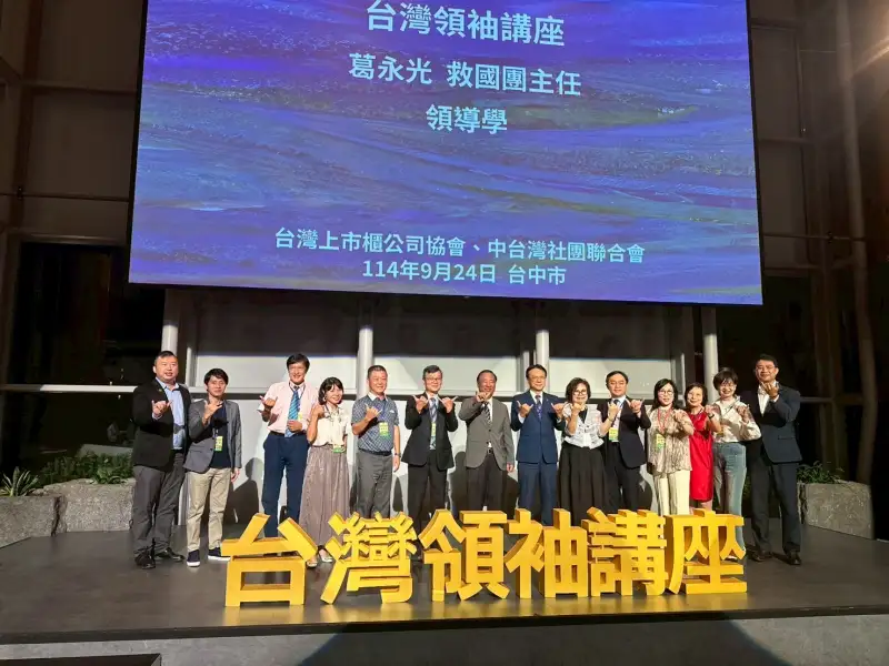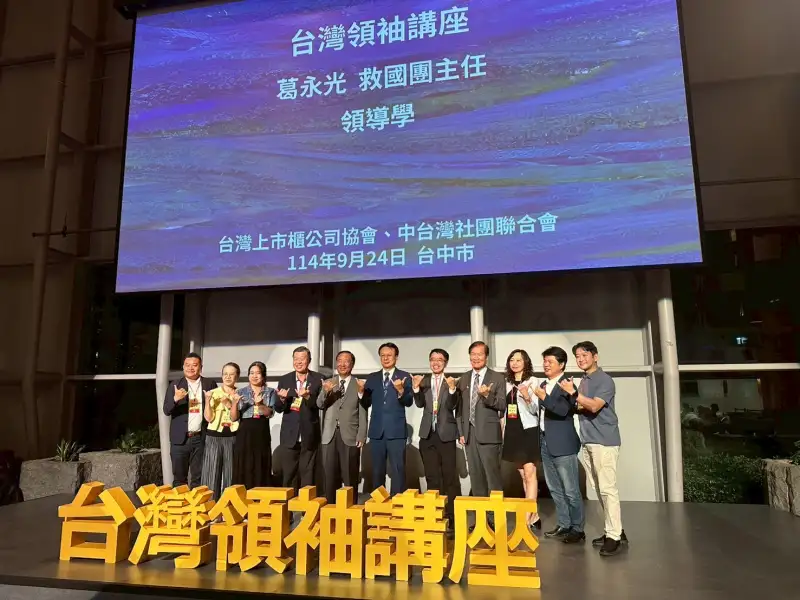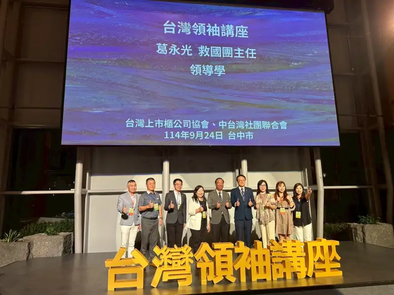 「一個真正的領導人,靠的不是權力,而是影響力。」台灣上市櫃公司協會與中台灣社團聯合會24日在台中裕元酒店舉辦「台灣領袖講座」,邀請救國團主任、台大教授(退休)葛永光博士分享「領導與統御」的主題。現場高朋滿座,各界產業菁英到場支持交流,場面相當熱鬧。