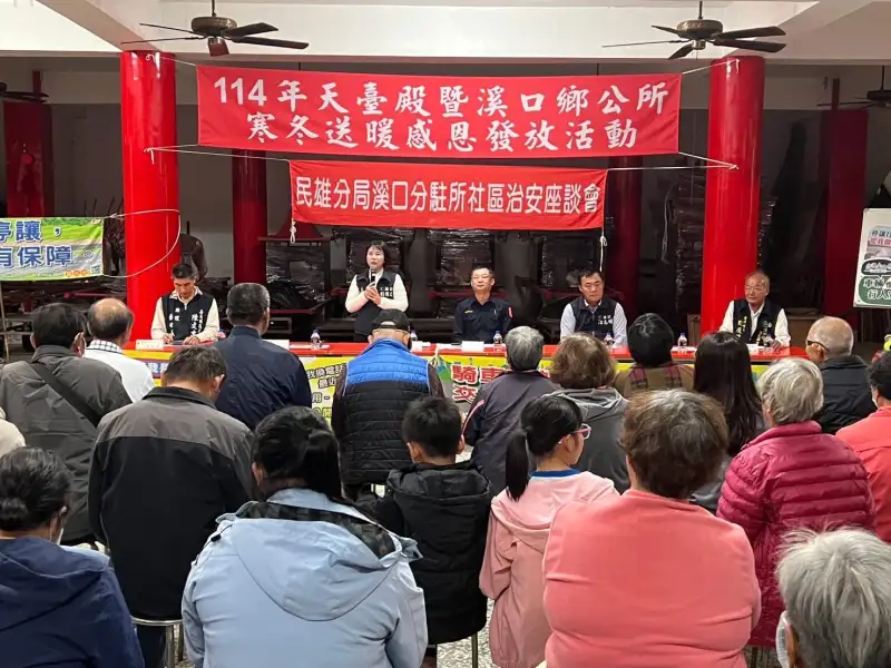 嘉義縣警察局民雄分局柳溝派出所於 114 年 11 月 27 日在溪口鄉疊溪村舉辦第 4 季社區治安會議,由所長龔晉夫與疊溪村長劉慶維共同主持,並邀請多位嘉義縣議員及代表蒞臨指導,共同關注地方安全議題。