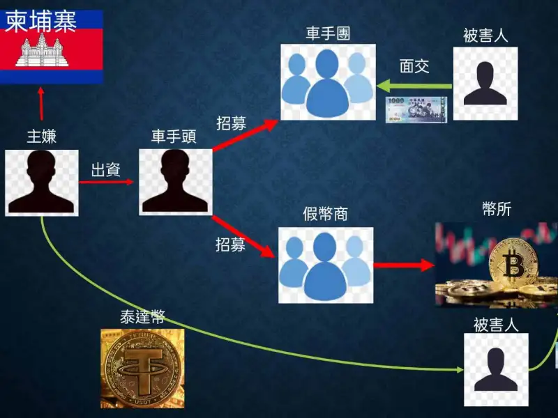其中,主嫌羅姓(35歲)與丁姓(31歲)男子曾赴柬埔寨與詐騙機房合作,返台後設立據點,並在高級住宅大樓內設置「水房」掩護金流操作;另由許姓(23歲)嫌犯負責車手調度,甚至安排成員假扮幣商與被害人交易,提高詐騙成功率。