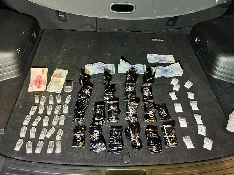 高雄市警察局新興分局員警於14日凌晨在中華三路與六合二路口執行巡邏勤務時,發現一輛自小客車違規變換車道,遂上前攔查。駕駛神情恍惚,經實施毒品快篩呈陽性反應,警方隨後在車內查獲大量毒品,宛如「行動毒庫」,全案依違反《毒品危害防制條例》及公共危險等罪嫌移送法辦。