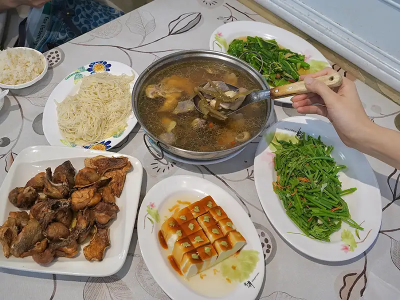 來到阿里山,沿線的在地美食不容錯過,「石桌羊肉店」以現宰帶皮羊肉聞名,肉質軟嫩Q彈、毫無羶味;「街角永富苦茶油雞」以苦茶油雞與山葵煮雞湯展現山區料理特色;「林園茶香美食田媽媽」將自家茶葉入菜,創造出茶香四溢、風味獨具的創意料理。
