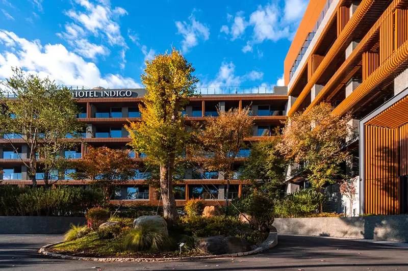 文觀局表示,位於海拔約1300公尺的「阿里山英迪格酒店」,是全台最高的國際精品酒店,建築外觀呼應阿里山森林小火車的意象,室內空間以在地鄰里文化為設計靈感,簡約卻極具質感,清晨可在無邊際水池邊欣賞日出,夜晚則可倚著山風與星光靜靜放鬆。