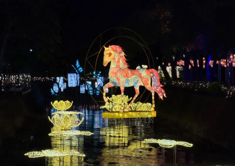 2026 屏東燈節 客家燈區於 內埔鄉龍頸溪畔公園 璀璨點亮,以「耀動客家」展現六堆文化的多元風貌。(圖/屏東縣政府 提供)
