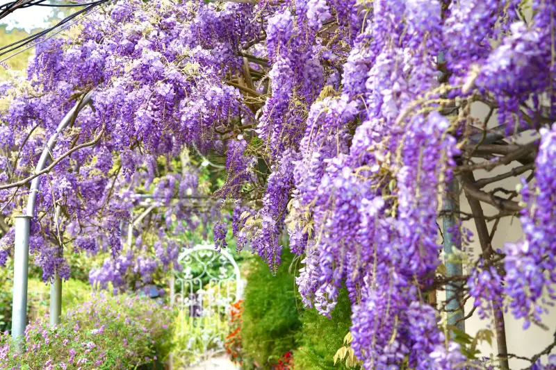三月的瑞里,紫藤花如夢幻瀑布般垂掛於步道、旅宿和庭院之間,陽光透過棚架灑落,隨風搖曳,展現浪漫春日花景。遊客在花影中漫步,仿佛進入花廊,無論健行、拍照或靜靜感受,都能體會瑞里的詩意與柔美。多角度的花串畫面,使每一步都充滿驚喜,成為春季山城旅遊的亮點,讓旅人留下難忘的回憶。