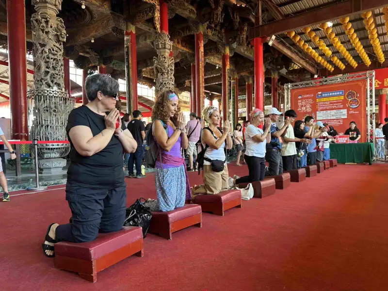 遊客在南鯤鯓代天府虔誠參拜,體驗台灣傳統宗教文化魅力。(圖/雲嘉南管理處提供)