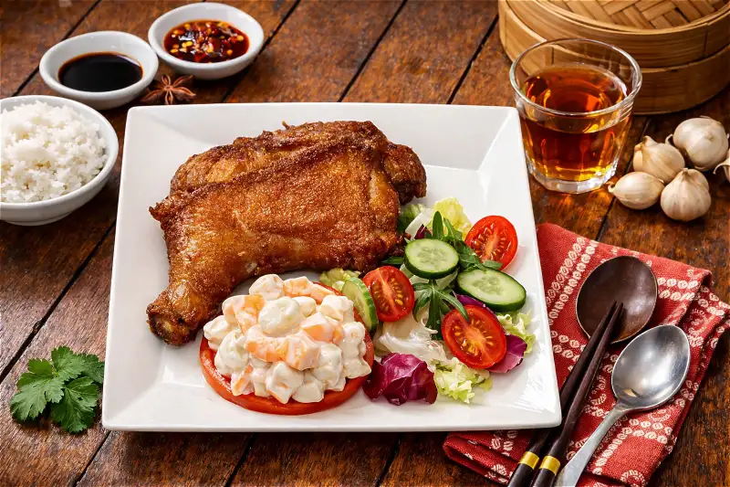 充滿鹹香誘惑的南乳炸雞髀,運用獨特南乳風味醃製後酥炸至金黃,是老式港式冰室中不可或缺的靈魂美味。( 圖/ 大溪笠復威斯汀提供)
