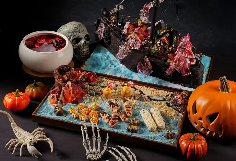 順應打卡風潮,館內特別營造多處沉浸式場景,從海盜帆船造景、搞怪海盜魅影、暗黑寶藏禁區、幽冥墓園到骷髏船長禁忌寶庫,氛圍驚悚又趣味。萬聖限定餐飲同步登場,外觀詭譎卻暗藏驚喜的料理與飲品,結合多樣萬聖活動,共創奇幻回憶。
