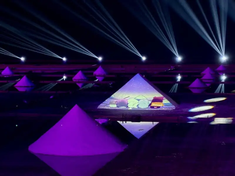 徐振能處長表示,井仔腳瓦盤鹽田已逾200年歷史,是臺灣現存最古老的瓦盤鹽田,白天有純白壯麗的景致,傍晚有夕陽晚霞,夜晚在光雕點亮後,則展現出截然不同的繽紛樣貌。光與影的律動,結合聲音與投影設計,不只是藝術展演,更是讓歷史場域重新獲得新生命的過程。今年一見雙雕藝術季特別與LINE貼圖人氣明星《胖鯊魚鯊西米》合作,以童趣可愛的身影串聯全場,帶領觀眾展開一段從城鎮、鹽田到海岸的光影旅程,透過故事化的呈現,觀眾不僅能欣賞視覺盛宴,更能在光影流轉中認識雲嘉南的鹽業文化與濱海風情,邀請大家一起來鹽路去旅行。