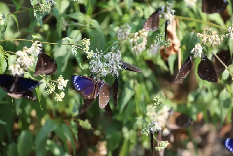 每年冬季,成群紫斑蝶在高雄茂林山區越冬棲息,蝶群停棲於林間植物上,隨風飛舞,形成壯觀而夢幻的生態景象,成為全臺最具代表性的冬季自然奇觀之一。(圖/取自茂林國家風景區)