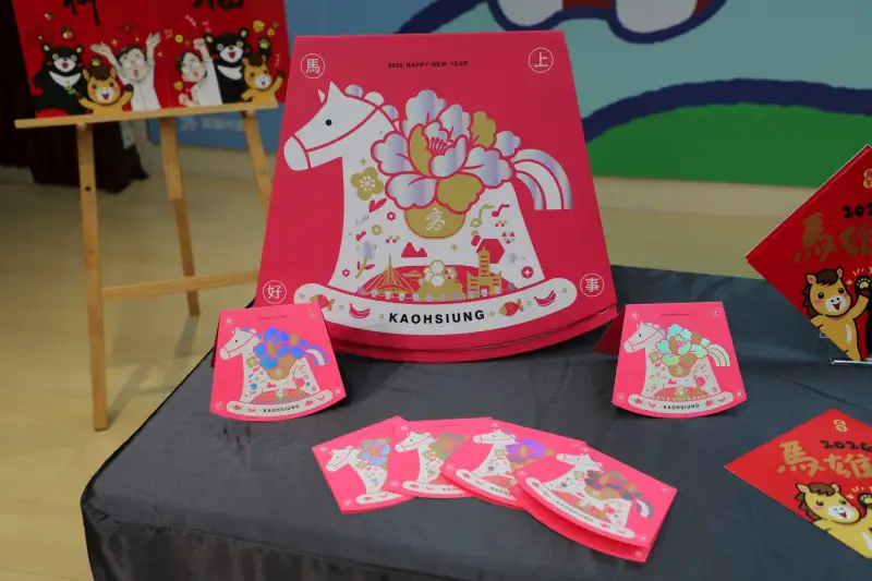 高雄市馬年限定新春小物亮相,以馬年主題結合城市意象與吉祥元素設計,包含春聯、斗方與賀卡等。