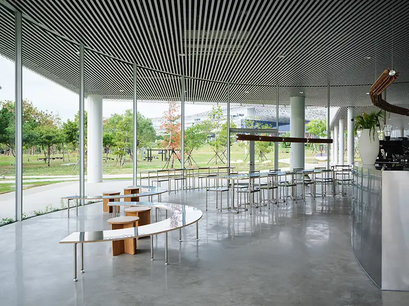 位於一樓的Pharos Coffee則以咖啡融入生活為理念,提供淺焙單品手沖咖啡、淺焙義式咖啡與手作麵包等輕食,店內選用台灣設計團隊製作的家具,並邀請台中合成器音樂家Nick Tsai為空間量身創作聽覺氛圍,讓聲音成為沉浸式體驗的一部分。「Pharos」取自希臘文「燈塔」,象徵在綠美圖通透的建築中,這處空間如同指引風味的燈塔,使觀眾能在此駐足,專注於咖啡本質,享受從容舒適的片刻。