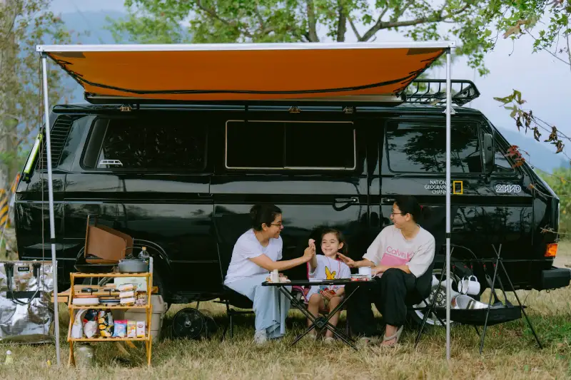 「2026 屏東北野祭 PP Festival」民眾體驗車宿露營生活,在露營車旁搭起天幕與桌椅,展現自在愜意的戶外親子風。(圖/屏東縣政府提供)
