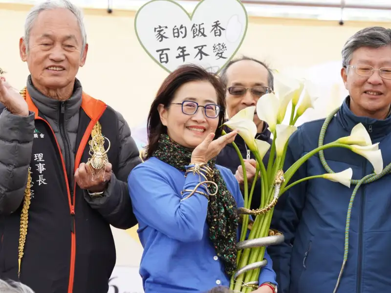 此外,「IG打卡點地景花藝設計展」也同步登場,由11家在地農園打造創意花藝裝置。金質獎由名陽匍休閒農莊農友王財欽以作品《海芋風鈴下的蛙聲》獲得,運用廢棄素材與竹材製作風鈴,讓自然風聲成為花田樂音;銀質獎則由曹家花田香農友曹瑞芸《舞動烏克麗麗》及發現生活園藝農友曹昌正《發現花田樂境》奪得,透過樂器與花藝裝置營造花田音樂會氛圍。