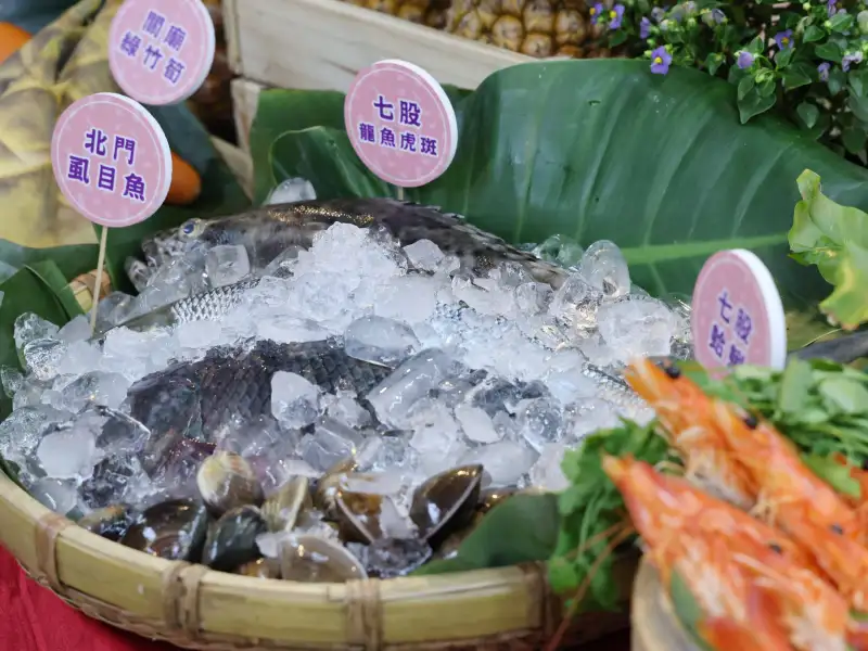 菜單內容融合台南各區特色食材,從關廟鳳梨、綠竹筍到白河蓮子、玉井香菇等農產,再到官田跑山雞、學甲蒜頭與將軍烏魚子等經典風味;海鮮則包含北門虱目魚、七股龍虎斑、草蝦及干貝等新鮮漁獲,展現台南山海資源的豐富層次。
