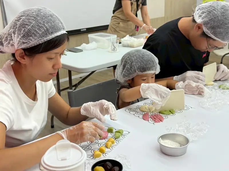 活動現場氣氛溫馨熱絡,從搓揉麵糰、挑選餡料到壓模成形,民眾親手參與每一個環節。孩子們全神貫注、樂在其中,家長則陪伴協助,親子分工合作,歡笑聲不斷。參與者在完成專屬冰皮月餅的同時,也加深彼此的情感連結,體驗「分享」與「陪伴」的價值。