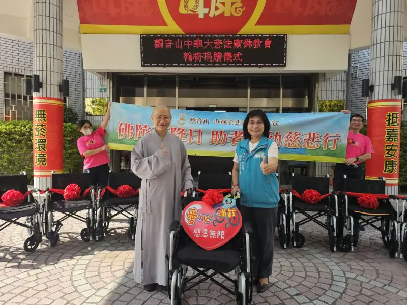觀音山中華大悲法藏佛教會長期投入公益慈善,佛教會代表釋大善法師表示:「慈善不應止於形式,而要深入日常與基層,此次捐贈輪椅,希望能提供行動不便民眾就診過程的方便性,提升醫療服務品質,也衷心期盼能夠拋磚引玉,鼓勵更多團體與企業關心醫療弱勢」,衛生局長趙紋華也特別於儀式中頒發感謝狀,感謝觀音山中華大悲法藏佛教會長期以來深耕慈善、推動社會關懷,一起友善醫療環境。