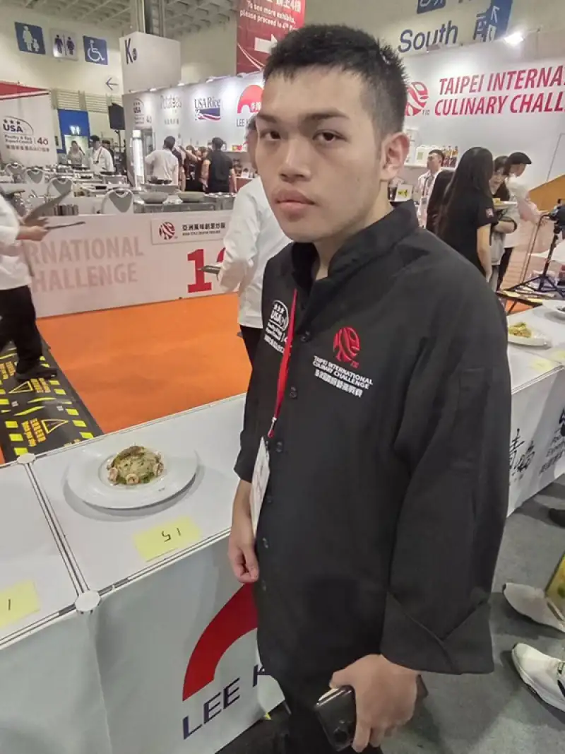其中餐飲系三年級吳俊達在「中式肉類挑戰賽」及「亞洲風味創意炒飯」兩大競技項目中榮獲金牌,表現亮眼。在中式肉類中以「雙響交織:梅香酥翅×麻辣牛卷」獲獎,該道料理發想自「柔與剛的平衡」,由去骨雞翅與牛肉卷構成,以中西料理手法交織呈現兩種截然不同的風味特色;創意炒飯則以「咖哩椰香雙味炒飯×鮮蝦佐泰式酸辣醬」獲獎,以泰式料理特色為核心,搭配咖哩與椰香兩種泰式代表風味,並以中西式擺盤融合,使視覺與味覺達到平衡。