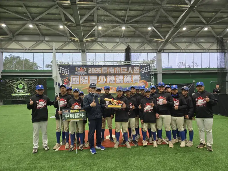 2026台南市巨人盃國際青少棒錦標賽,20支隊伍在為期6天的激烈角逐後,最終由南投縣中興國中奪冠、台中市中山國中奪亞軍、桃園市仁和國中及日本東北選拔隊共同平分季軍,並於今(7)日下午由南市府體育局長陳良乾主持閉幕典禮及頒獎。
