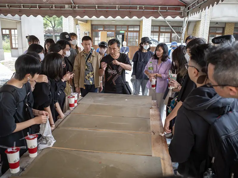 國寶級質感師陳新發手把手教導同學如何作舊。(圖/崑山科技大學 提供)
