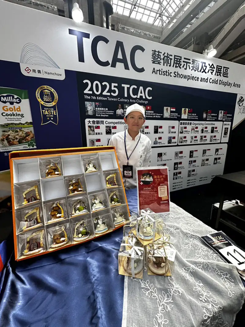TCAC台灣國際廚藝美食挑戰賽是台灣唯一獲世界廚師聯合會(Worldchefs)認證比賽,也是台灣最高難度的廚藝競賽,有國際賽事經驗的孫明琮,以歐姆蛋搭配牛頰及吐司下鍋油炸,獲評審青睞得到銀牌獎及西式雙人鮭魚銅牌。羅雨珊獲2銅牌、跨域挑戰飲調項目的明韋辰獲得西餐2銅與飲調佳作。蔡逸安、陳昱安、區珞鈞及林程禾各獲1銅,張凱勛獲1銅1佳作,郭俊佑1銅2佳作,呂冠賢、李友荃及顏辰諺各獲佳作,烘焙團隊選手黃彥慈拿下2佳作成績,成果豐碩。