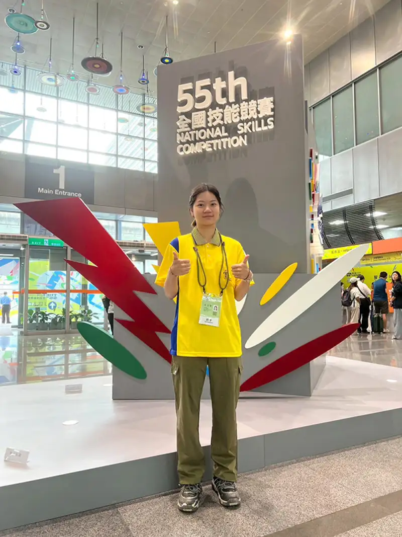 但所幸努力沒有白費,在今年第55屆分區賽、全國賽、二階國手選拔賽,玉雪都以第一名的成績晉級,她說能夠有這麼好的成績,要特別感謝訓練師們一路以來的指導及支持,因為有他們的鼓勵讓她能夠堅持作對的事情,接下來也會更加密集訓練備戰,全力以赴迎戰明年的國際技能競賽、勇奪獎牌閃耀國際。