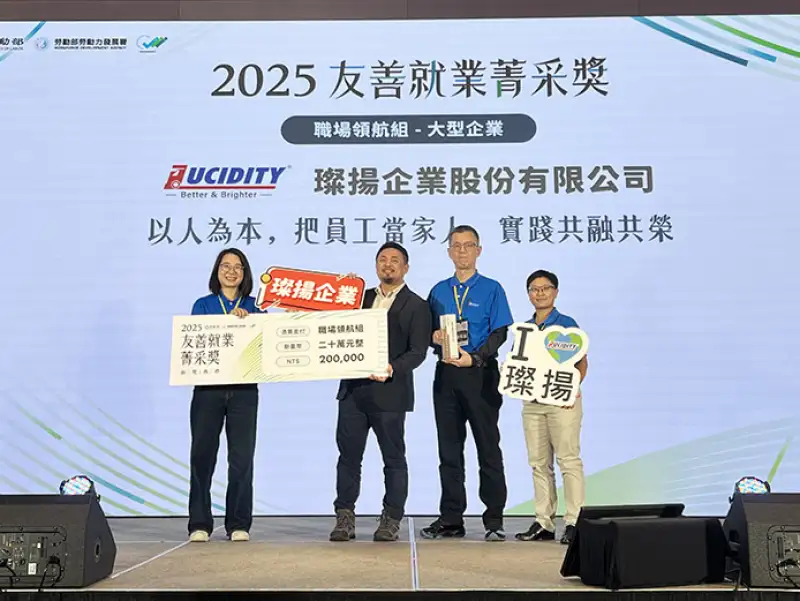 璨揚企業股份有限公司榮獲勞動部「2025友善就業菁采獎」大型企業「職場領航組」。(圖/雲嘉南分署 提供)