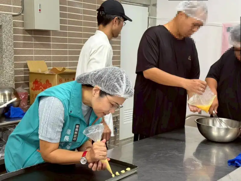 衛生局長趙紋華親自體驗曲奇餅製作,鼓勵學員勇敢踏出復元第一步。(圖/嘉義縣衛生局 提供)