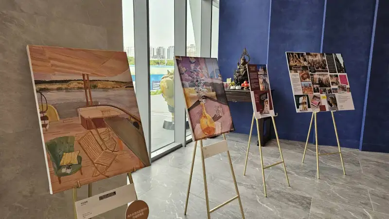 而《丹琦·美術館》的設立,不只是為了典藏與展示,更是一段文化旅程的起點。凌丹琦預計未來將長居歐洲,展開如文藝復興時期大師般的藝術壯遊——遍訪歐洲文明重鎮、沉浸於千年文化洗禮之中,汲取更深厚的色彩精神。因此她選擇將台灣創作與歷程保存於《丹琦·美術館》,做為與故土連結的靈魂載體。 美術館空間本身也蘊含藝術詩意——手工打造的牆面、象徵海洋的馬賽克浪花地磚,以及融合達文西「維特魯威人」語彙的展示架,讓人彷彿置身於一座濃縮的歐洲博物館。此次開幕展更搭配五星級四葉集團的迎賓雞尾酒會與古典音樂演出,結合藝術、味覺與聽覺的五感沉浸式體驗,成為安平海岸線最具文化能量的藝術節點。